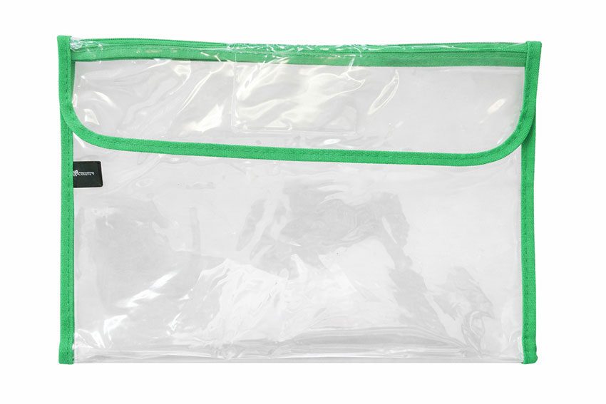 TREFOIL CLEAR LIBRARY BAG WITH ZIP GREEN