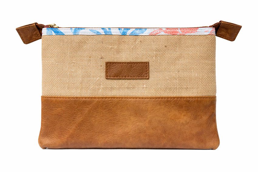 TREFOIL PADDED HESSIAN / LEATHER PENCIL BAG BLUE