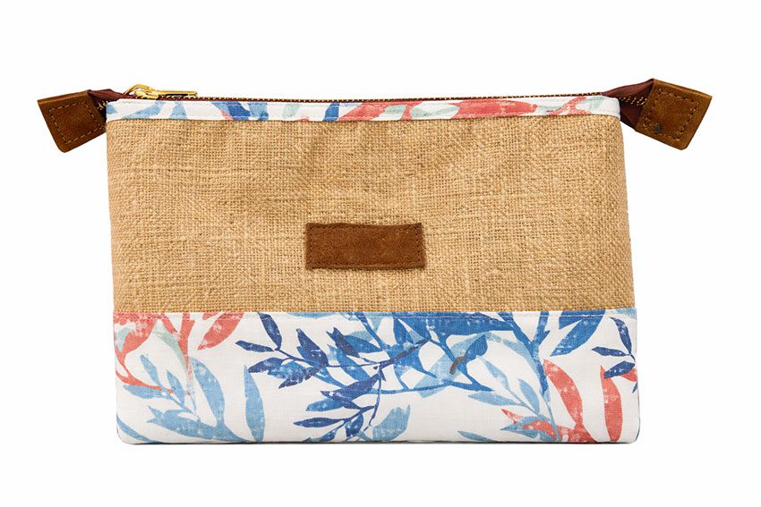 TREFOIL PADDED HESSIAN / PRINT PENCIL BAG BLUE